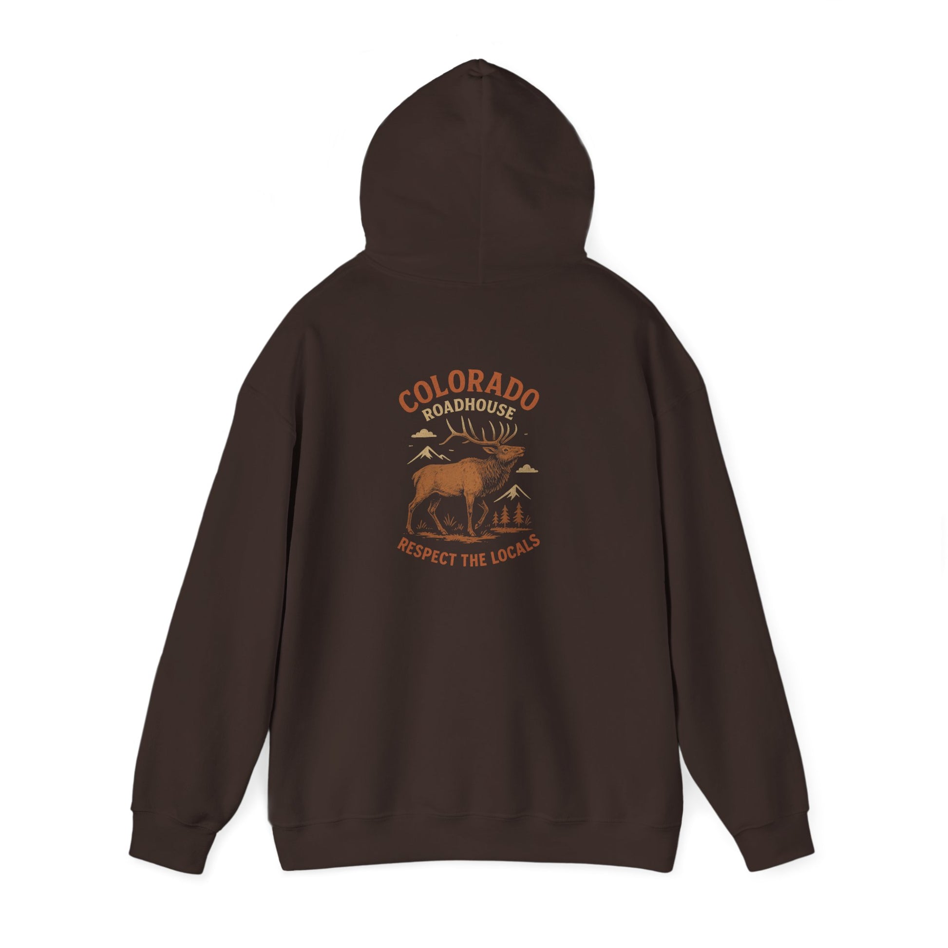 This hoodie channels slow, wide-open mornings in elk country—the kind where mist lifts off the meadow and everything feels respectful and quiet. A bold elk illustration sits across the back with the phrase “respect the locals,” a subtle reminder to move gently and listen. The roomy kangaroo pocket and snug double-lined hood make it a go-to layer for post-hike coffee, campsite chores, or lingering at the trailhead. It’s built to age into the life of someone who values rugged calm and mindful outdoor time.